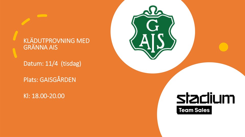 Tisdag 11/4 kommer stadium till GAIS-gården med vår egen kollektion. Utprovning på plats.