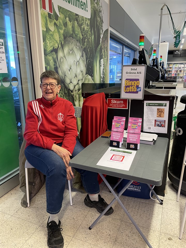Sju GAISare har jobbat med lotteriförsäljningen på Coop denna helgen. Bäst går Sverigelotterna men även Bingolotterna ökar! Håkan Nykvist, Uno Käll, Hasse Alden, Erling Wulff, Barbro Thörn, Monica Brengdahl och Siw Johansson (på bilden), alla har de medverkat och själv som åttonde hjulet har jag jobbat med att bli fri från influensan på hemmaplan. Haglunds Konditori säljer också våra lotter så stort tack till er också som säljer åt GAIS! Snart kan ni se våra fotbollsflickor när de besöker Bingolotto-studion i Göteborg. Fortsätt att stödja vår förening med att köpa en lott när handlar på Coop! 👍👍👍