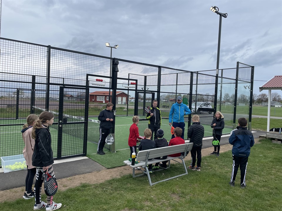Claes, Martin och Mattias startade upp Padelgrupperna i lätt duggregn. Vi har längtat efter att spela Padel säger Noel 12 år när han drar igång padelspelandet med kompisar igen.