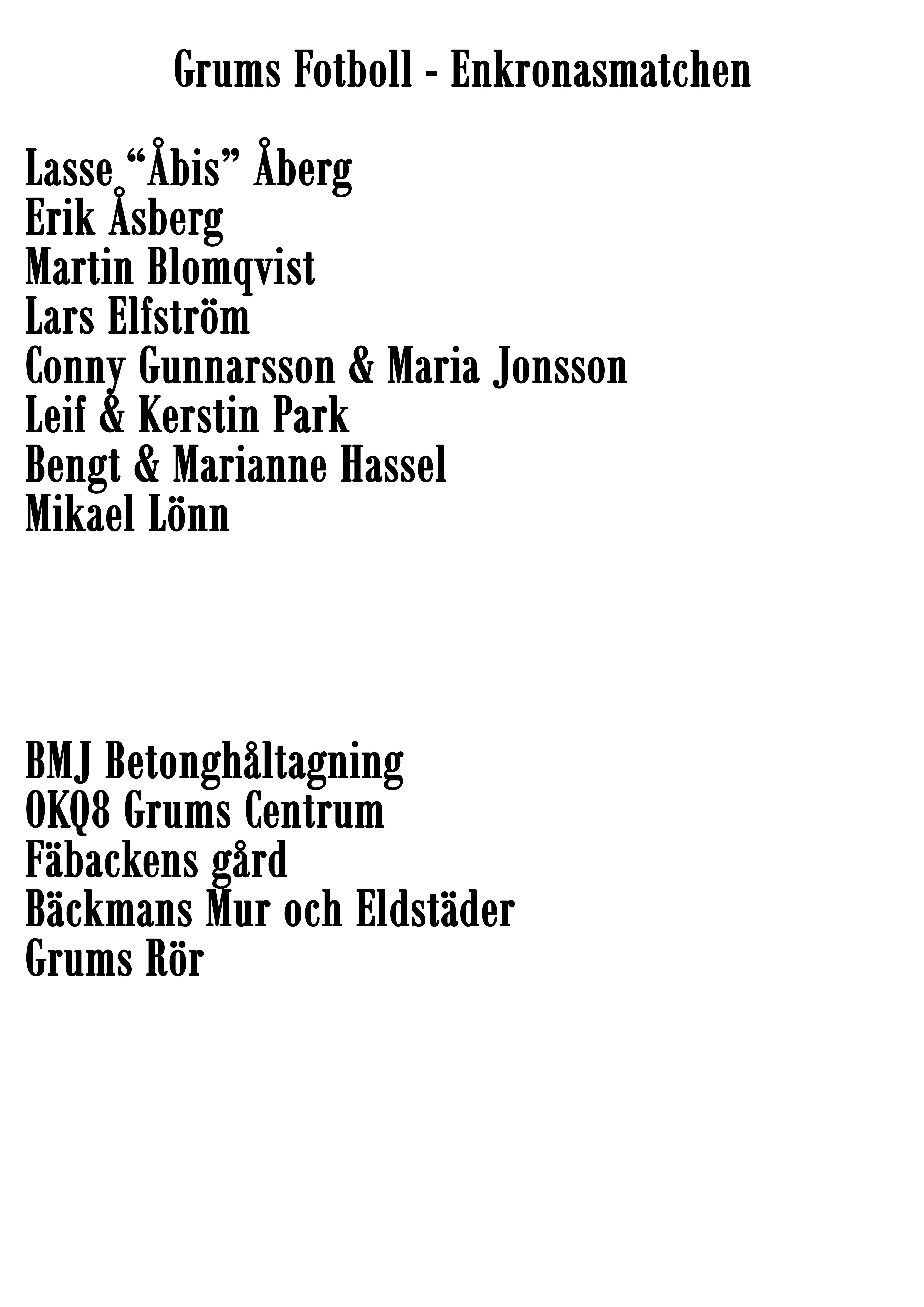 Fyll i din e-postadress för gratis uppdateringar om Grums IK FK A-lag