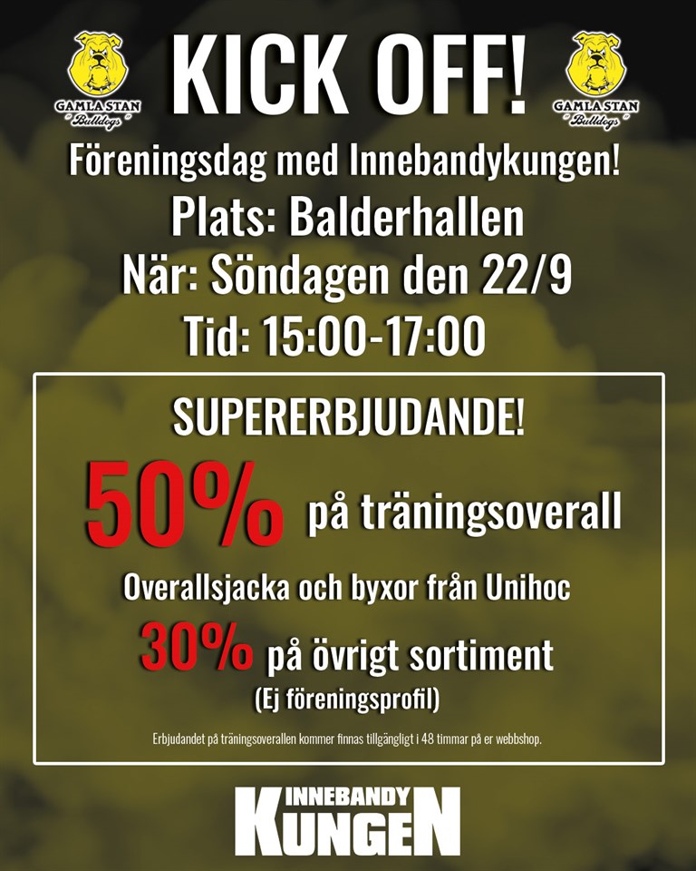 Som vi tidigare skrivit om har vi planerat för föreningsdag på Balder A den 22/9 kl 12-17. Vi avser att spela macher inom föreningen, som ett sätt för att kicka igång säsongen. Korv- och fikförsäljning kommer att finnas. Spelschema kommer inom kort. Innebandykungen kommer och visar upp föreningskläder samt erbjuder bra pris på utrustning. Se bild för info. I år kommer ingen fotografering att ske.