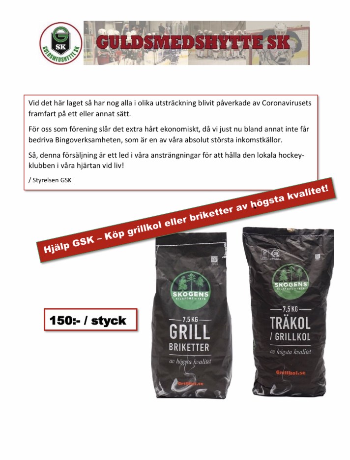 Hjälp oss minimera förlusterna för utebliven inkomst under sommaren. Köp grillkol av oss i GSK. A-lag Herrar 7 jun 2020 1kommentar
