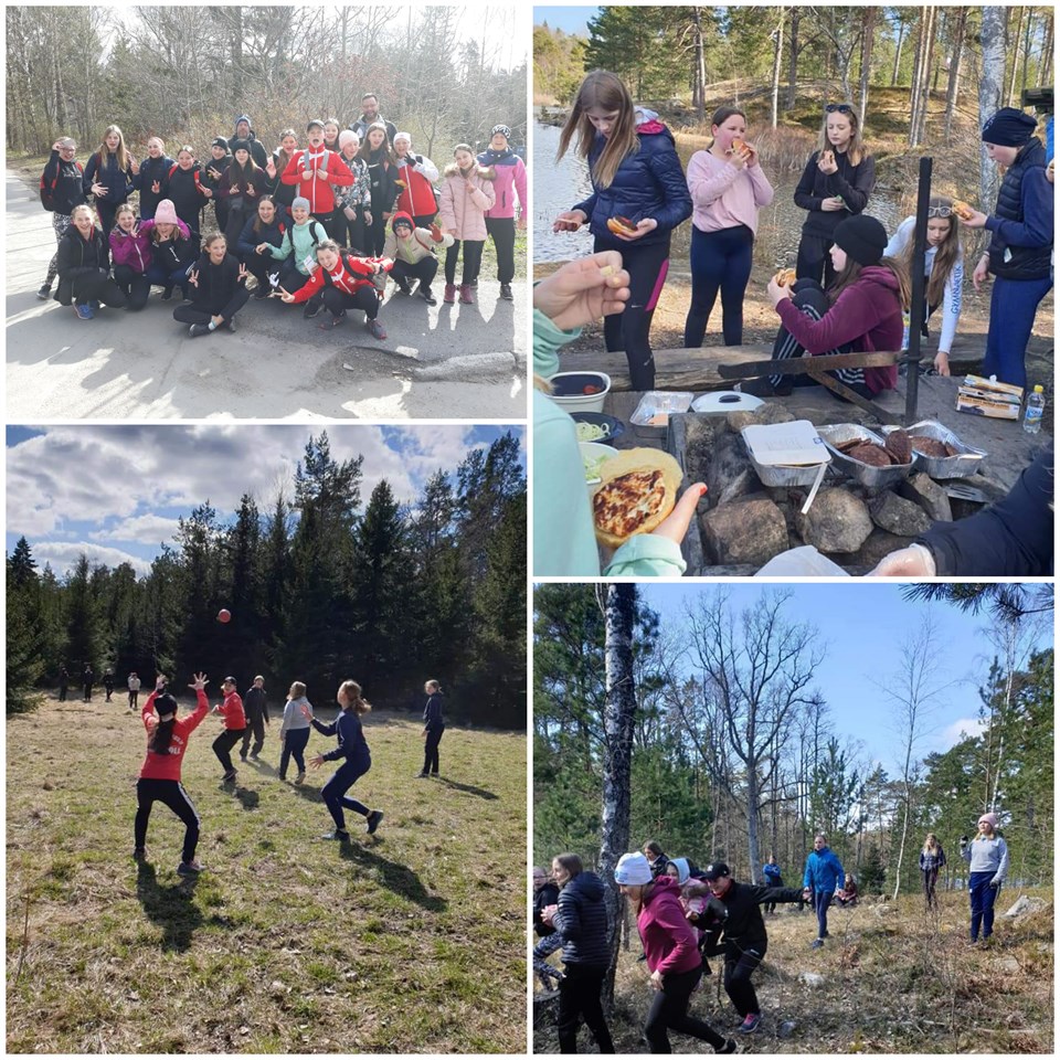 Vi samlades på infartsparkeringen vid Ålstäket kl 10.00 Målet för dagen var att vandra en del av Värmdöleden, Ålstäket till Gärdesträsk vindskydd och sedan ner till Strömma Efter att först ställt sig i längdordning, vilket tog lite tid, så delades tjejerna upp i 3 grupper. Målet under vandringen till vindskyddet vid Gärdträsk var att svara på tipsfrågor om allemansrätten samt i gruppen berätta lite mer om sig själv. De fick berätta för varandra om följande saker: - Favoriträtt - Sina mellannamn - Favoritresemål - Vad sina föräldrar heter (även bonusföräldrar) - Vad mormor, morfar, farmor och farfar heter (eller hette) (även bonus) Efter ca 7,5 km var vi äntligen framme vid Gärdesträsket (det tog oss ca 2 tim att gå, med en massa stop för att svara på frågor mm). Där hade Stefan och Libnda förberett och grillat hamburgare och halloumiburgare till oss och det var sååå gott! Efter intagandet av mat var det dax för lite snack om kommande säsong som alla bara längtar till och vad vi behöver ha för focus. Vi spelade sedan den nya trenden av skogshandboll som sedan blev ängshandboll. Efter denna aktivitet hade vi prisutdelning av tipsfrågorna och alla lag imponerade med många rätt. 12 var max och två lag hade 11 rätt och ett hade ALLA rätt. Sista biten tog vi oss sedan från Gärdesträsket ner till där Tyra, Jessica och Stefan bor i Strömma (en mycket kort promenad på ca 500 m) där tjejerna hämtades upp. Tack alla grymma tjejer för att ni gjorde vår dag sååå bra och fantastisk och att ni tyckte det var lika mysigt som vi ledare. Tror att distansen denna dag blev typ 8 km! Jag somnade gott, trött och lycklig i går kväll! Kram från "Linus", lagledare