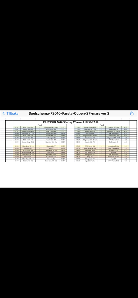 Speltider och info söndag Cup Farsta söndag 27 mars