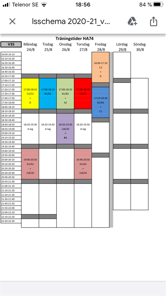 Träningstider V35