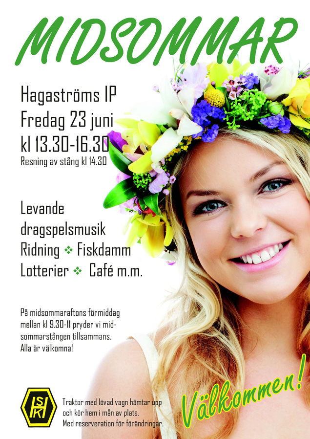 Hagaströms SK bjuder in till familjärt midsommarfirande på Hagaströms IP. Festligheterna startar kl. 13.30! Lövade skrindor hämtar upp barn i mån av plats runt om i Hagaström (ingen påstigning på IP). Skuggan, Lindesnäs och Durovägen trafikeras. Varmt välkomna mellan kl 13.30-16.30. Midsommarstången reser vi ca 14.30 - missa inte det!