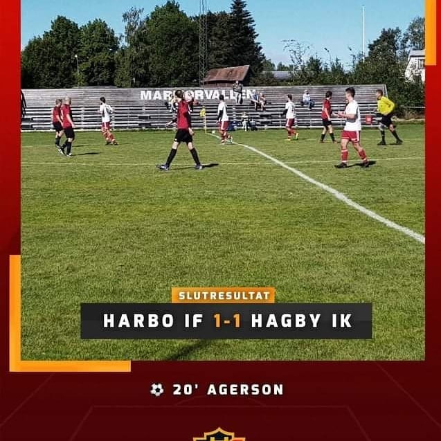 En märkbart irriterad Rasmus behöver ha matchpackningen i bilen redan från torsdag. Vi misstänker fredagsdejt med doftgran och handbromssladd. Jag vet inte om det var den för ovanligheten tidiga lördagsmatchen som fick JW att ha med sig 3 matchtröjor eller om han hade smuttat på Carl den andres 3.5or. Caesar skröt lite försiktigt om sin ”burn” utanför polishuset, för konstapeln. Coach tog taktiken på svenska, där ett förargligt litet ”nej” hoppade in och skapade viss förvirring. Matchen börjar lite trevande när Harbo gör några klassiska rulla i backlinjen passningar. Likt proffsen , fast lite långsammare. Det är inte samma fart på Hagby som i tidigare inledningar av matcherna. En av förklaringarna kan vara att Harbo är ett lite bättre lag än tidigare motståndare. I minut 15 slår undertecknat en djupledsboll till Isak som målvakten hinner ut på. Tittandes ut mot bänken efter en förväntad utskällning av coach, ser jag istället en bänk som jublar. På något sätt har målvakten tappat bollen och Isak rullar in 0-1. Jag är inte speciellt ledsen över att missat målet, då Isak garanterat kommer vilja prata om det vid nästa samling. I övrigt är det en jämn match där många felpassningar slås. Inget av lagen lyckas riktigt lugna ner spelet. I andra halvlek fortsätter matchen likt första halvlek. Båda lagen har några bollar som smiter förbi stolparna och bollarna som går på mål tar bådas målvakter tryggt hand om. I minut 57 nickar Harbo in en boll på frispark. 1-1 står sig hela matchen ut. Oavgjort är endast kul och trevligt när man är 7år, domaren fick en boll i stjärten (kul och trevligt även efter 7års ålder) och deras nr5 hade lika många bokstäver i sitt namn som Fred. Dagens prestation ⭐⭐⭐ Isak ⭐⭐ Pelle ⭐ Rickard
