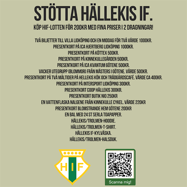 Genom att köpa en lott så bidrar du till Hällekis IFs verksamhet och sponsrar med 200kr/lott.