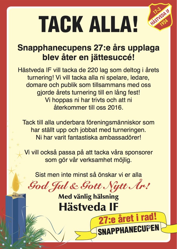 Hästveda IF vill tacka alla lag som deltog i årets turnering