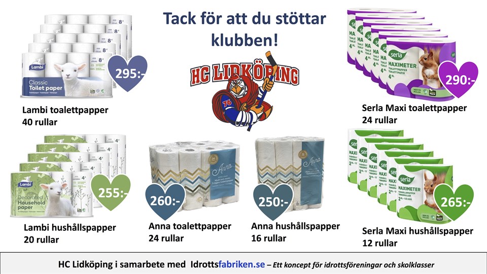 Vi ser dock gärna att varje medlem siktar på att sälja minst 5 balar var eller mer för att nå våra högt ställda mål på totalt 1000 balar. Spelar ingen roll om det är Toa- eller Hushållspapper.