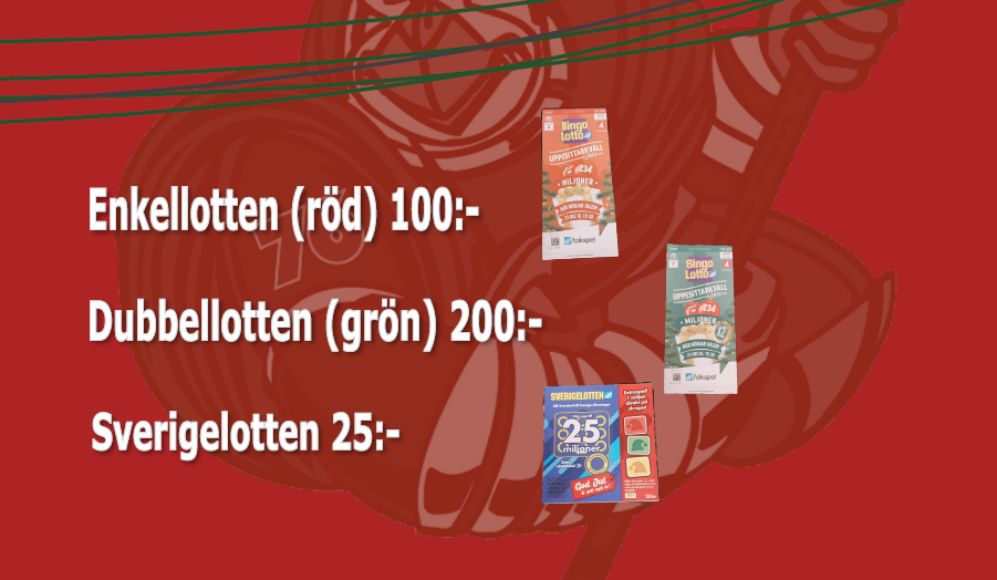 BINGOLOTTER Nu finns det möjlighet att köpa BingoLotter till uppesittarkvällen den 23/12, kl 19:30. Vi är såklart oerhört tacksamma från föreningens sida om du säljer några extra lotter också, förutom de du sannolikt själv vill ha. Varje såld lott ger ett välkommet bidrag till ungdomsverksamheten och HCL. Du kan köpa lotter genom att; • Köpa i kiosken i ishallen under matcher, både ungdoms och A-lag. • Gå upp till Lotta dagtid, eller kom överens med henne hur du får tag i lotterna. • Kvittera ut en bunt lotter hos Lotta. När du sålt klart swishar du allt som en klumpsumma och/eller lämnar tillbaks de du inte får sålt, senast 21 dec. • Swisha för det antal lotter du hämtar hos Lotta. Dina kunder swishar dig. HÄLSNING FRÅN NYA STYRELSEN Den nya styrelsen har nu varit aktiv i ett par månader. Är du nyfiken på vad den jobbar med, kan du få reda på det här. TOA- & HUSHÅLLSPAPPER Har du inte beställt än? Du är väl inte en sån som inte använder ...... ? Lägg din digitala beställning här. DERBY - MATCH Imorgon, fredag 17/11 är det dags för hemmamatch för A-laget. Vi möter Grästorp, vilket innebär derby, nygrillade hamburgare och riktigt bra tryck i hallen. Kom och heja fram vårt lag. 19:00 släpps pucken.