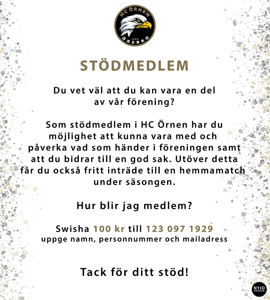 Bli gärna stödmedlem i HC Örnen genom att följa instrukionerna enligt ovan. Ditt stöd hjälper föreningen att bedrivas framåt och utvecklas. Tack för ditt stöd! / HC Örnen