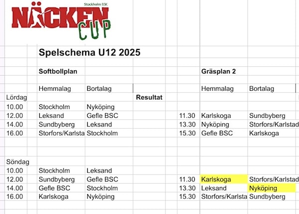 Här kommer ett uppdaterat spelschema för Näckencup i Skarpnäck i helgen.
