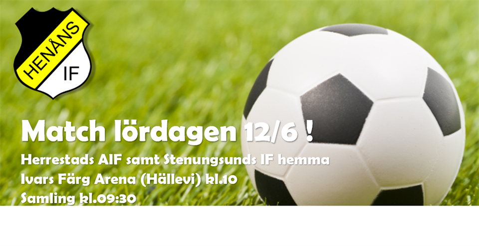 Då var det dags för match igen! Nu på lördag 12/6 kommer Herrestads AIF samt Stenungsunds IF till Ivars Färg Arena (Hällevi) för match mot oss. Vi samlas 09.30, första matchen spelas kl.10 och därefter är det paus för att spela en match till. Ni som har matchkläder tar med det och övriga har jag kläder till. F-11/12 8 jun 2021 0kommentarer