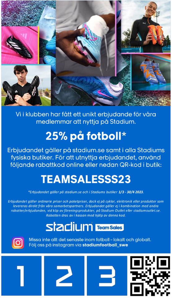 Behöver du köpa något nytt inför nästa säsong så har alla medlemmar nu en rabatt på Stadium. F-11/12 9 mar 2023 0kommentarer