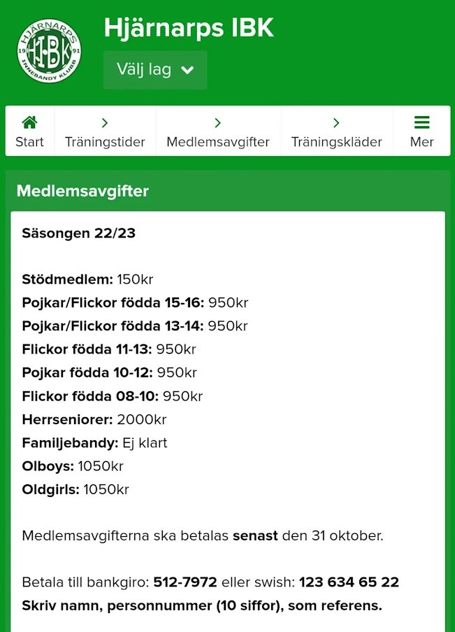 Hej, Se bifogad bild för medlemsavgifter. Pojkar födda 10-12 5 okt 2022 0kommentarer