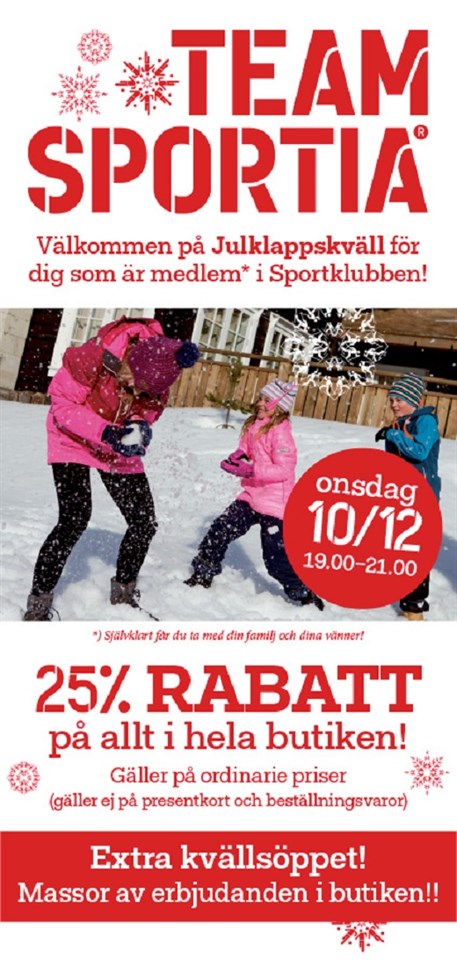 Team Sportia välkomnar oss till en Julklappskväll 10 december. Dom lämnar 25% rabatt på ordinarie priser i hela butiken. Öppet mellan kl 19-21. Är man inte redan Sportklubben medlem så löser dom det i butiken. Välkommen...