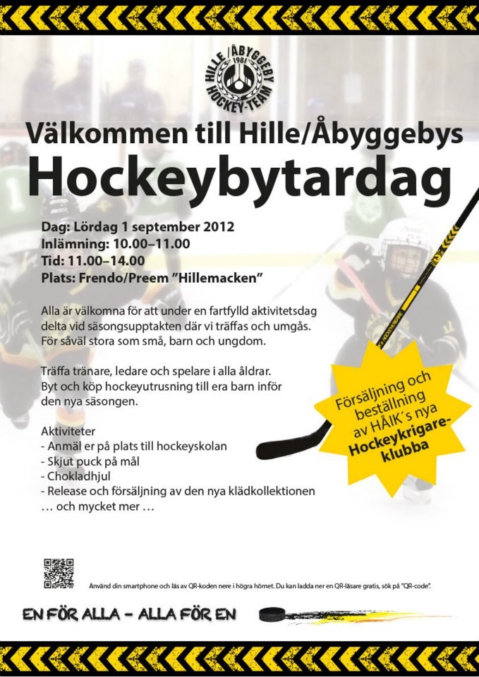 Årets hockeybytardag är planerad till den 1 september vid Frendo/Preem Hille Inlämning mellan 10.00 - 11:00 Försäljning mellan 11.00 - 14.00 Håll utkik för mer info om hockeybytardagen och dom överraskningar som den kommer innehålla