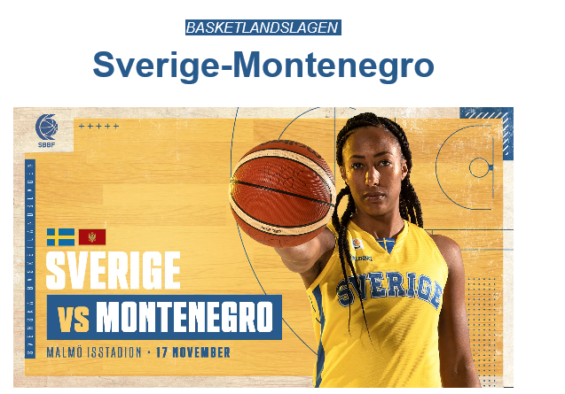 17 november kl 15.00 spelar svenska damlandslaget i basket EM-kval mot Montenegro i isstadion, Malmö. Genom föreningen kan vi köpa rabatterade biljetter, men bara längst till och med torsdag. Om de rabatterade biljetterna tar slut innan hänvisas man till vanliga biljettsläppet på fredag. Vi kommer att sitta tillsammans. Vi siktar in oss på att få biljetter på långsidan, de kostar 200 SEK per plats oavsett ålder. (Ordinarie pris 250 SEK) VI MÅSTE VETA OM NI VILL HA EN ELLER FLERA BILJETTER SENAST ONSDAG KVÄLL KL 21.00!!! Förhoppningsvis finns det biljetter kvar då. Betalning: Jag hör av mig till berörda, för jag vet inte om vi betalar med kort eller mot faktura. Länk till evenemang: https://www.facebook.com/events/2986902841325884/ Alltså: Sverige-Montenegro (damer) 17 november kl 15.00 Ishallen i Malmö (Gamla ishallen, bredvid Baltiska hallen, INTE Malmö Arena!) 200 kr per biljett, oavsett ålder. Hör av er till henrik.hernemyr@hoganas.com SENAST 2019-10-23 kl 20.59!! (Observera att biljetterna kan ta slut innan de rabatterade biljetterna ska sluta säljas på torsdag!)