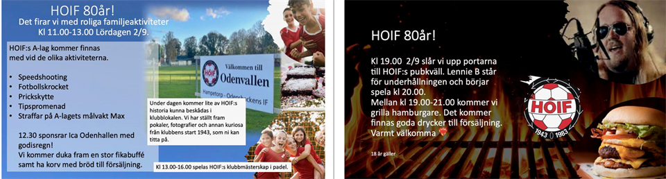 Missa inte HOIF:s 80-års firande nu på lördag på Odenvallen. Hampetorp-Odensbackens IF 29 aug 2023 0kommentarer