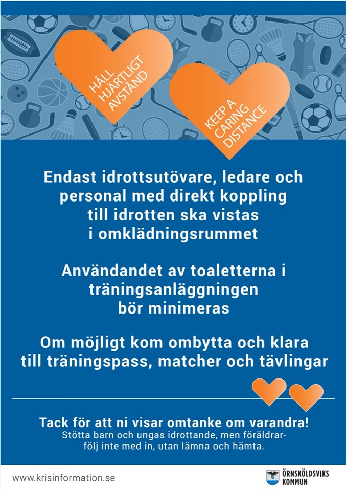 Husum Hockey har i dagarna fått en uppdaterad information via mail från Ångermanlands Ishockeyförbund i vad som gäller kring kommunens anläggningar, Husumhallen är vår egen anläggningen men vi följer samma råd och riktlinjer. Nedan är Fritidsenhetens utskick, tråkigt att allt inte är som förr men vi kan vara glad att våra barn och ungdomar får träna och vara aktiva i dessa tider. ”Fritidsenheten på Örnsköldsviks kommun skickar ut detta meddelande till alla berörda idrottsföreningar som bedriver verksamhet i Örnsköldsviks kommuns idrottshallar/anläggningar. Se till att denna information når ut i föreningen så att så många som möjligt kan hjälpa till och bidra till en säker verksamhet. När det gäller träningar så gäller att endast idrottsutövare, ledare och personal med direkt koppling till idrotten ska vistas i idrottshallen/anläggningen. Om möjligt kom ombytta och klara till träningspass, matcher och tävlingar. Vi ser gärna att föräldrar lämnar och hämtar sina barn utanför idrottshallarna/anläggningarna. Om möjligt undvik trängsel och möten som uppstår mellan olika föreningars och träningsgruppers bokade träningstider. Genom att till exempel vänta i omklädningsrummet tills gruppen innan är klara. När det gäller träningsmatcher och tävlingsmatcher så hänvisar vi till de bestämmelser och rekommendationer som gäller i respektive idrottsförbund. Det är av största vikt att alla som är inblandade i träning och match blir informerade om vilka regler som gäller. Det som också är viktigt att veta är att det är arrangerande förening som ser till att alla bestämmelser och rekommendationer efterföljs vid träning och match. Vi uppmanar alla föreningar att hålla sig uppdaterade på ändringar i respektive idrottsförbund när det gäller riktlinjer. Innebandy:Innebandy Ishockey: Ishockey Folkhälsomyndigheten: Folkhälsomyndigheten Fritidsenheten Örnsköldsviks Kommun 2020-09-16” Husum Hockey kommer fortsatt hålla oss uppdaterade utifrån Covid-läget och myndigheternas restriktioner och eventuella förändringar kommuniceras ut via hemsidan. Vi hoppas att alla spelar, ledare och anhöriga respekterar Svenska ishockeyförbundets riktlinjer, vilka är förutsättningarna för att vi ska kunna fortsätt bedriva barn och ungdomshockey i Husumhallen under säsongen 20/21. Vid funderingar vänd er till respektive lagledare alternativt direkt till styrelsen. Med vänlig hälsning Styrelsen Husum Hockey