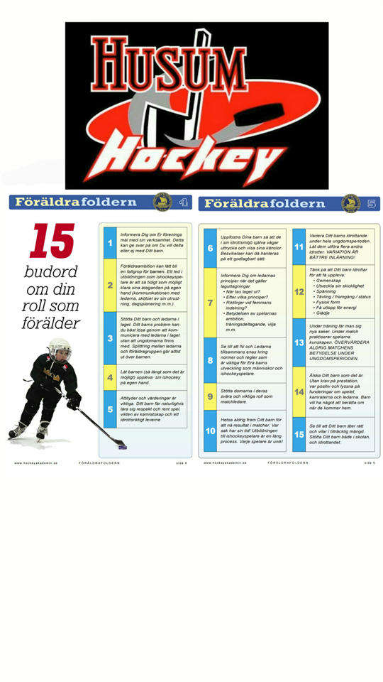 Nu när isen är lagd i Husumhallen vill vi i Husum Hockey påminna om Svenska ishockeyförbundets 15 budord vilket vi också står bakom. Klicka på den röda texten här ovan för att läsa hela foldern, på bilden är endast de 15 budorden. Husum Hockey 2 aug 2016 0kommentarer