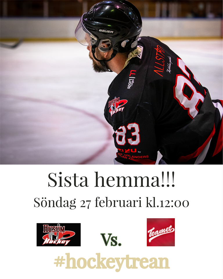 På söndag är det dags för sista hemmamatchen för denna säsong i hockeytrean. Den 27/2 tar alltså Oves grabbar emot Teamet för sista hemmamatchen denna säsong. Det kommer bli en rolig match som kommer falla publiken i smaken. Hoppas vi ses där och hejar fram Husum! Välkomna! Foto: @j.silvenord Husum Hockey 25 feb 2022 0kommentarer