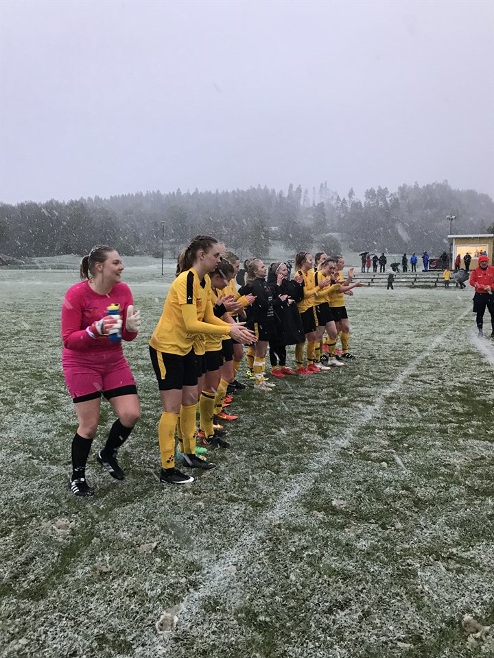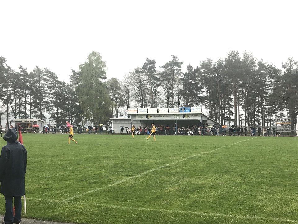 Gårdagens hemmapremiär på Ekängsvallen kan man ändå kalla lite historisk! Första damlagsmatchen på över 10år :) Hyssna ställde upp med 17 spelare denna märkliga majdag och motståndarna var från Öxnevalla. Matchen inleddes i strålande solsken, nervositeten låg i luften både hos hemma- och bortaspelare. Det märktes att man gärna ville vinna. Ett något stressat spel från båda lagen höll i hela halvleken. Vi fick också se många tuffa närkamper där Hyssna både gav och tog emot smällar. En eloge till dagens domare som inte blåste sönder matchen utan lät närkamperna fortlöpa. Maria Johansson skallade ihop med en Öxnevallaspelare, vilket resulterade i en snygg bula över kinden. Inga gula kort delades ut denna match. Dagens Hyssnamålvakt var vår back Sandra Hedberg som gjorde en fantastisk insats när hon väl behövde ingripa, en trygghet att ha i målet trots att hon egentligen är utespelare! Lagom till minut 36 hade all publik hunnit anlända till Ekäng för att hinna se Clara Müllerström näta för första gången i gul/svart, 1-0 Hyssna. En anna Clara, Martinsson, var stabil som vänsterback och levererade många snygga pass, mottagningar och var nära lägga in bollen i mål på en välslagen frispark. Emma Ring gjorde många fina löpningar längs högerkanten och briljerade även i andra halvlek som höger back. Kicki och Tommy hade hand om kiosk och entré, ett uppdrag som visade sig kräva en hel del. Nånstans mellan 100-120 personer var på plats för att titta på hemmapremiären, och alla ville köpa korv och kakor. Härligt att se sådant stöd! Andrahalvlek blev något lugnare, mycket av spelet försvann i takt med att snöflingorna föll allt tätare. Planen var hal och bollen fastnade i snön som lade sig på planen. Spelarna kämpade på och frös mycket om händerna. Mot slutet av matchen fick Hyssna en indirekt frispark, denna rensade dock Öxnevallaförsvaret bort ganska enkelt. Matchen slutade 1-0 till Hyssna och vi tackar Öxnevalla för bra motstånd och en väl genomförd match! Nästa match spelar vi borta mot Sjömarken U.