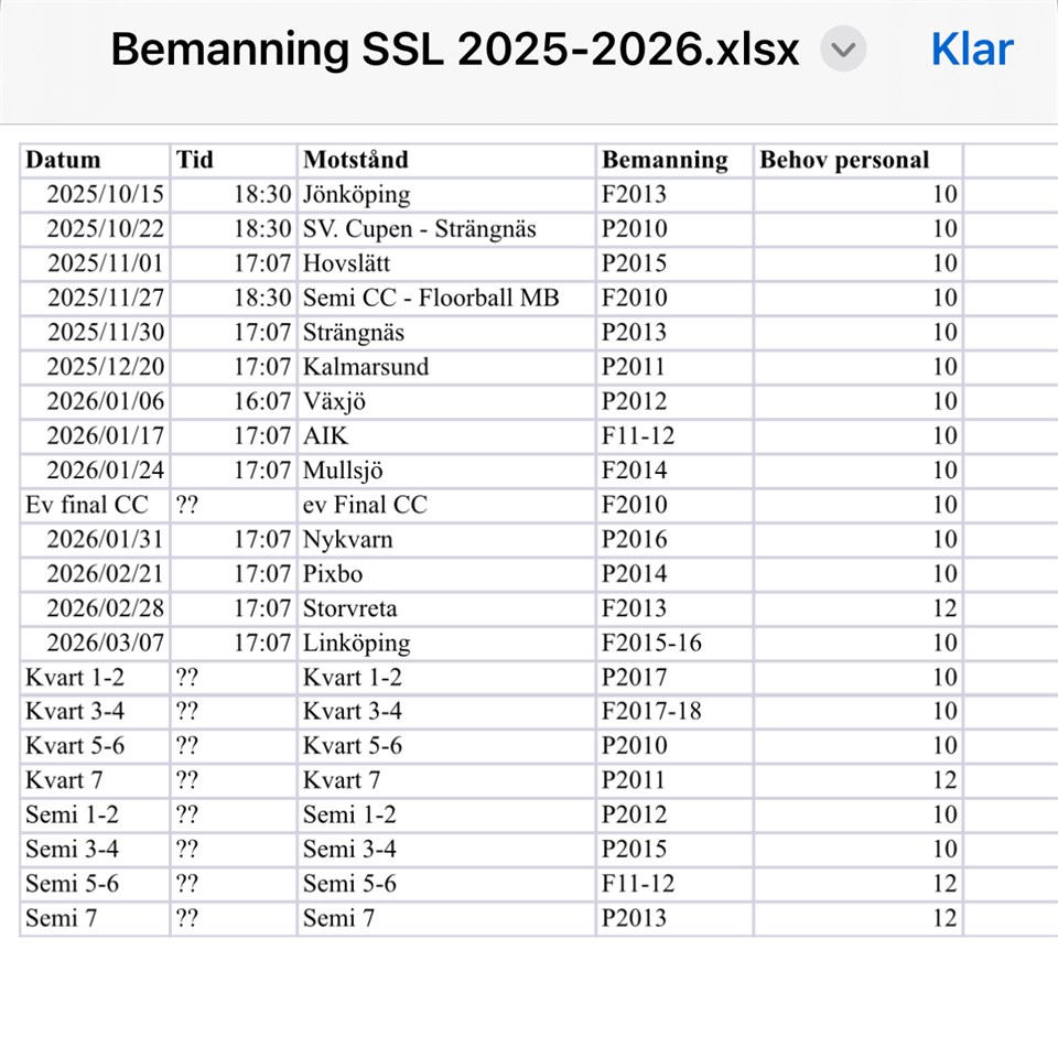 Idag har schemat för cafébemanning kommit. Nästa match sker på lördag 1 november, om fem dagar, Alla helgons dag.