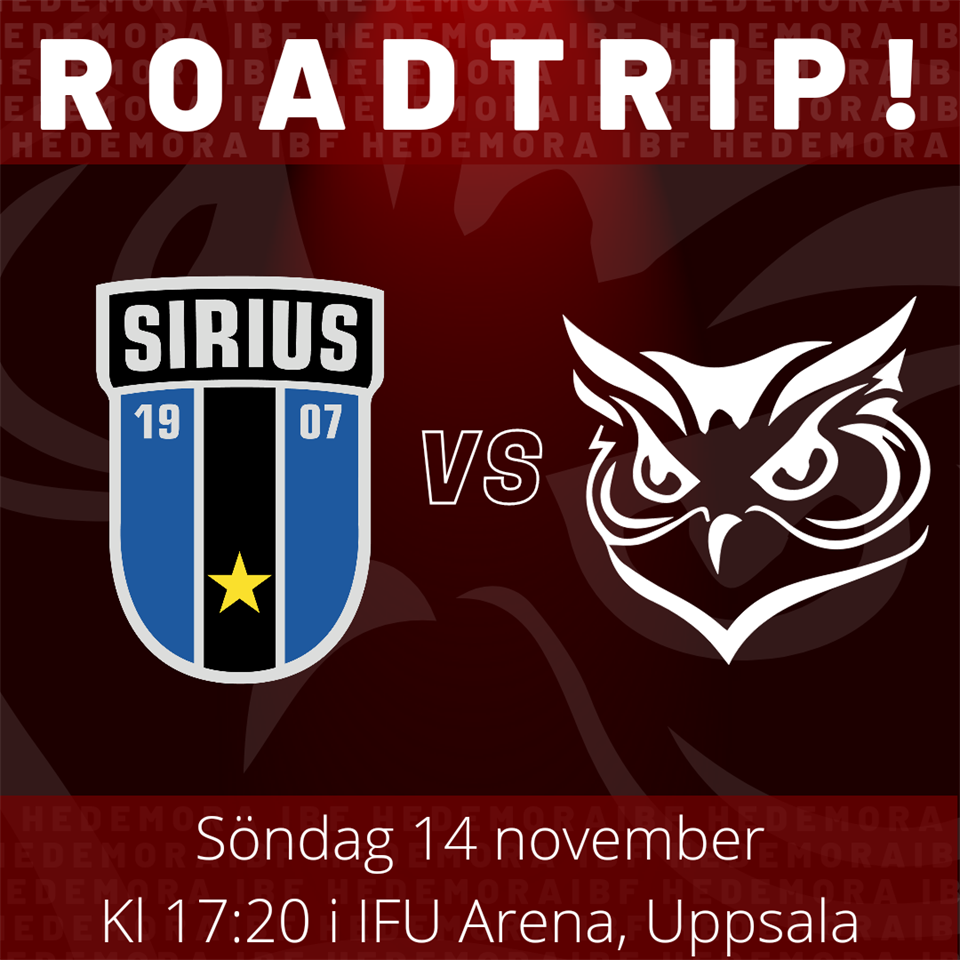 Det är dags för herrarna att återigen styra bussen mot Uppland. Denna gång väntar IK Sirius FBC i IFU Arena. Ett Sirius som så här långt står på en seger efter fem spelade matcher. Vi vet inte jättemycket om Sirius då det är en ny bekantskap för vårt herrlag. Det vi väntar oss är ett ungt, rappt och tekniskt lag med god fysisk status. Rasmus Sörensson är den som varit mest produktiv i Sirius hittills med 6 mål och 1 assist. Vårt lag har präglats av både sjukdomar och lite småskavanker på sina håll men vi åker ändock med en kompetent trupp. Den som stuckit ut lite extra under veckan är förra matchens sheriff Linus Södergren som fortsätter att ånga på. Mattias Ager är återigen med i laguppställningen efter en tids frånvaro. Matchstart 17:20 i IFU Arena på söndag. Möjlighet finns att boka en plats på bussen! Skicka ett meddelande via sociala medier eller ett sms till 070 243 56 16. Må det bästa laget vinna!