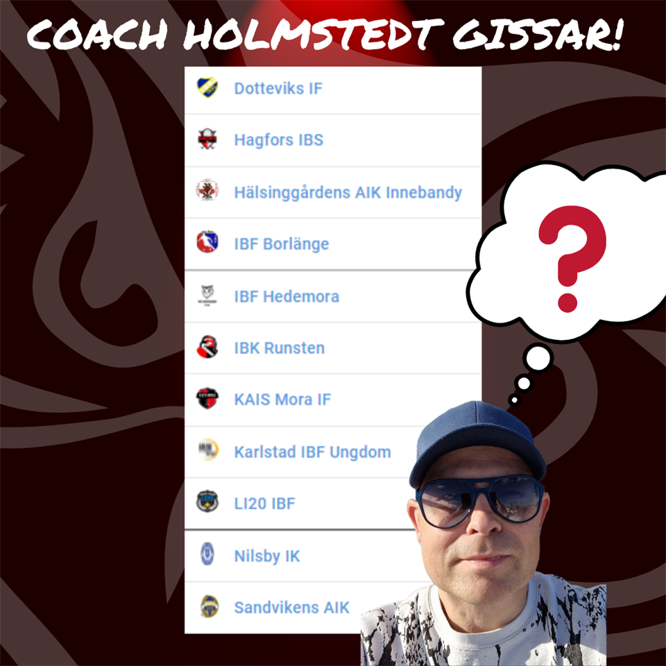 Herrcoachen Jarmo Holmstedt ger sig ut på hal is och gör en gissning på hur tabellen i H1 Västra Svealand slutar i vår. 1 - Nilsby IK – Solklar seriesegrare! Lagets stjärna: Adam Colling. 2 - Kais Mora IK – Sylvass förstafemma. Lagets stjärna: Johan Tomth. 3 - Hälsinggårdens AIK – Rutin! Lagets Stjärna: Jonas Adriansson 4 - IBF Borlänge – Stark Silly. Lagets Stjärna: Jonathan Sundberg ---------------------------------------------------------------------------- 5 - LI20 – Bra åldersmix. Lagets Stjärna: Lukas Sjöblom 6 - Hagfors IBS – Stabilt grundspel. Lagets Stjärna: Jesper Larsson 7 - IBK Runsten – Vassa omställningar. Lagets Stjärna: Robin Mattsson 8 - IBF Hedemora – Bra bredd. Lagets Stjärna: Mattias Ager 9 - Dotteviks IF – Rutinerad forwardsduo. Lagets Stjärna: Christoffer Nilsson ---------------------------------------------------------------------------- 10 - Sandvikens AIK – Talangfull trupp. Lagets Stjärna: Albin Norin 11 - Karlstad IBF Ungdom – Låg medelålder. Lagets Stjärna: William Cerwall Herr 1 Div. 2 10 sep 2022 0kommentarer
