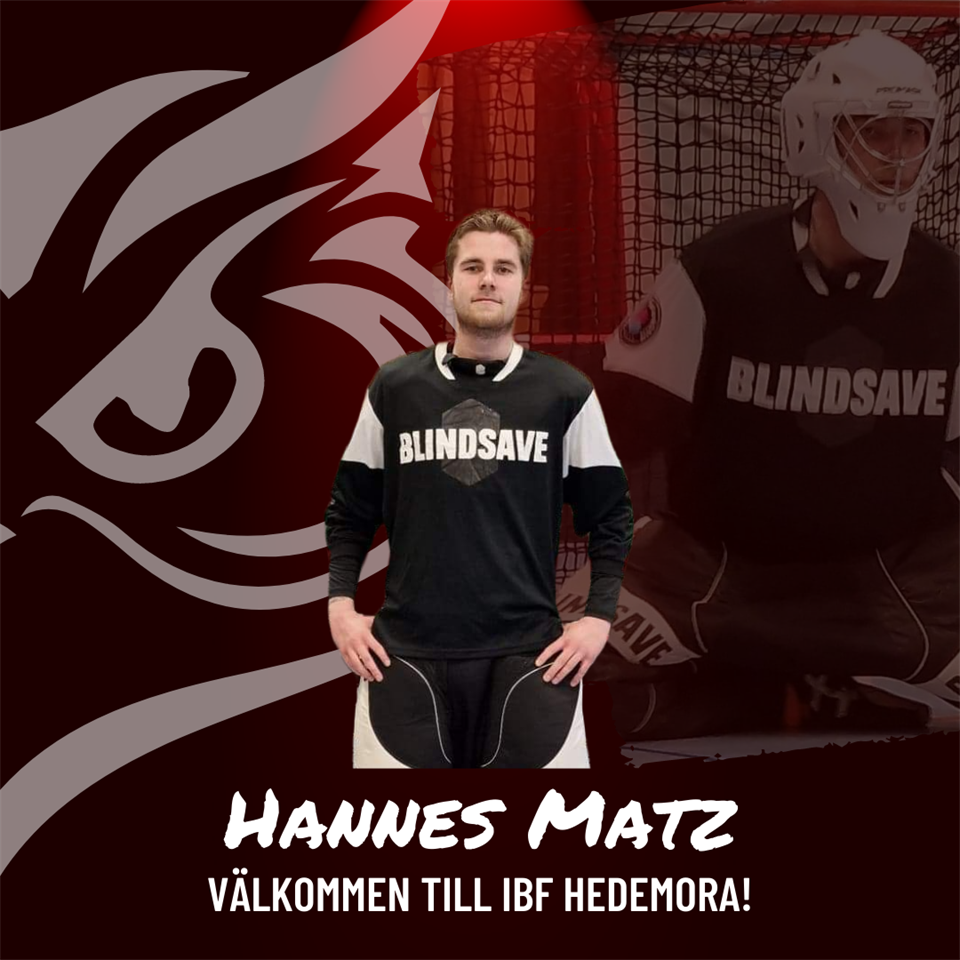 Den 20-årige 198 cm långe målvakten Hannes Matz kommer att representera IBF Hedemora kommande säsong. Han är fortfarande en ung och relativt oslipad målvakt men som redan visat upp många starka egenskaper. Exemplariska utkast, snabba reflexer och ett starkt närspel för att nämna några. Detta är en synnerligen intressant spelare som vi tror har massor av utveckling i sig! Vi stötte på denne vägg i fjolårets senior-dm när han vaktade buren åt sin moderklubb Digers BK. Trots massivt spelövertag vann vi endast med 1-0 i gruppspelet då Hannes, högst motvilligt, endast släppte in en ynka kasse. Senaste klubbadress för honom är IBF Borlänge. Välkommen till IBF Hedemora Hannes Matz!
