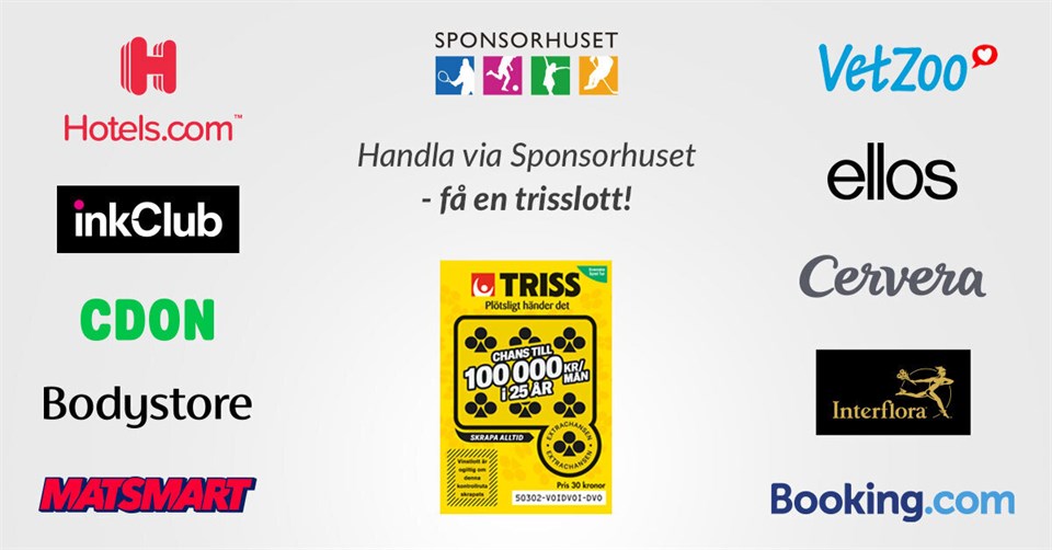 Just nu får alla som gör ett köp via Sponsorhuset en Trisslott. Allt som behövs är att du loggar in på Sponsorhuset och sedan klickar dig vidare till någon av deras 624 nätbutiker. När köpet är gjort får du ett tackmejl som visar hur mycket både du själv och IBF Ludvika har tjänat. Skicka detta tackmail till support@sponsorhuset.se så får du din digitala Trisslott. (OBS! kampanjen gäller så länge lagret räcker och det är 18 års åldersgräns) Klicka här för att se vår portal och sök sedan upp någon butik: https://www.sponsorhuset.se/ibfludvika