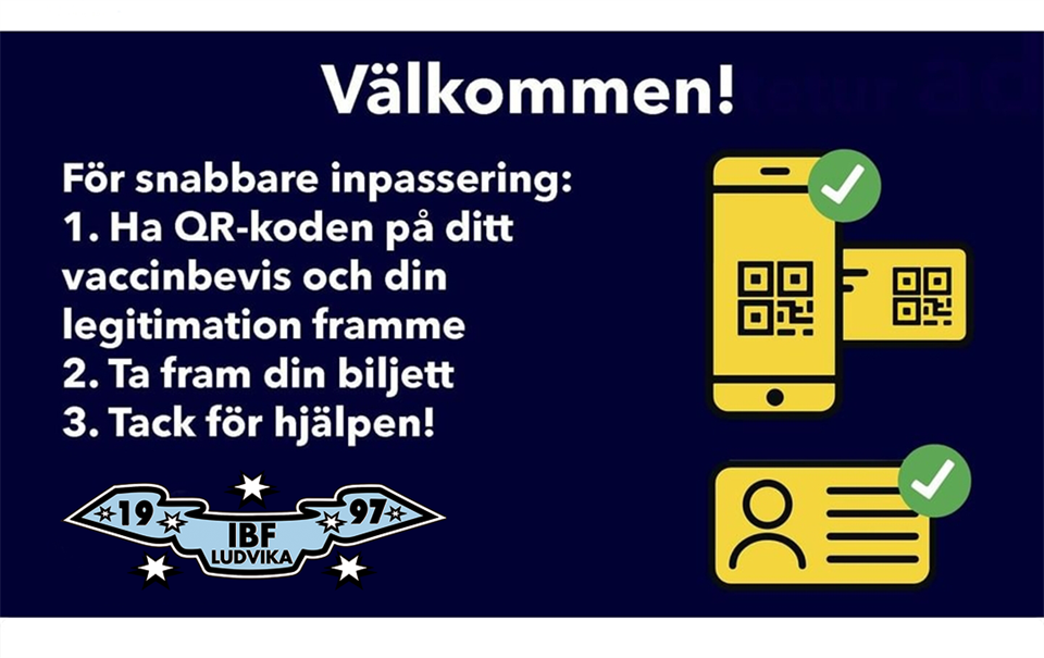 OBS! För att få komma in på våra matcher måste man visa upp sitt vaccinationsbevis och legitination.
