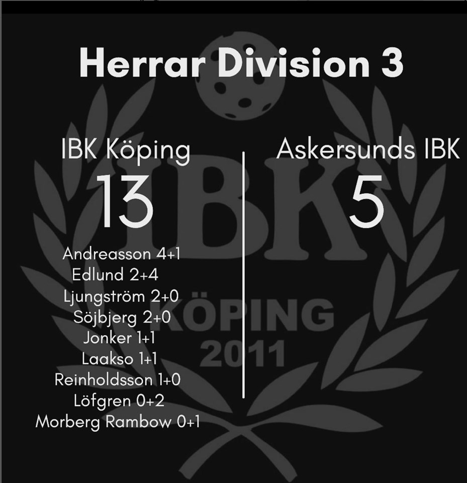 Underläge efter första perioden mot Askersund trots många chanser, sedan omsattes lägen i mål och IBK vände matchen i den andra perioden. Storseger blev det tillslut, Johannes Andreasson och Hugo Edlund blev offensiva segerorganisatörer när slutsegern tillslut skrevs till 13-5. En skön premiärseger, härnäst väntar KFUM Örebro på bortaplan. Herrar Div 3/HJ 1 okt 2022 0kommentarer