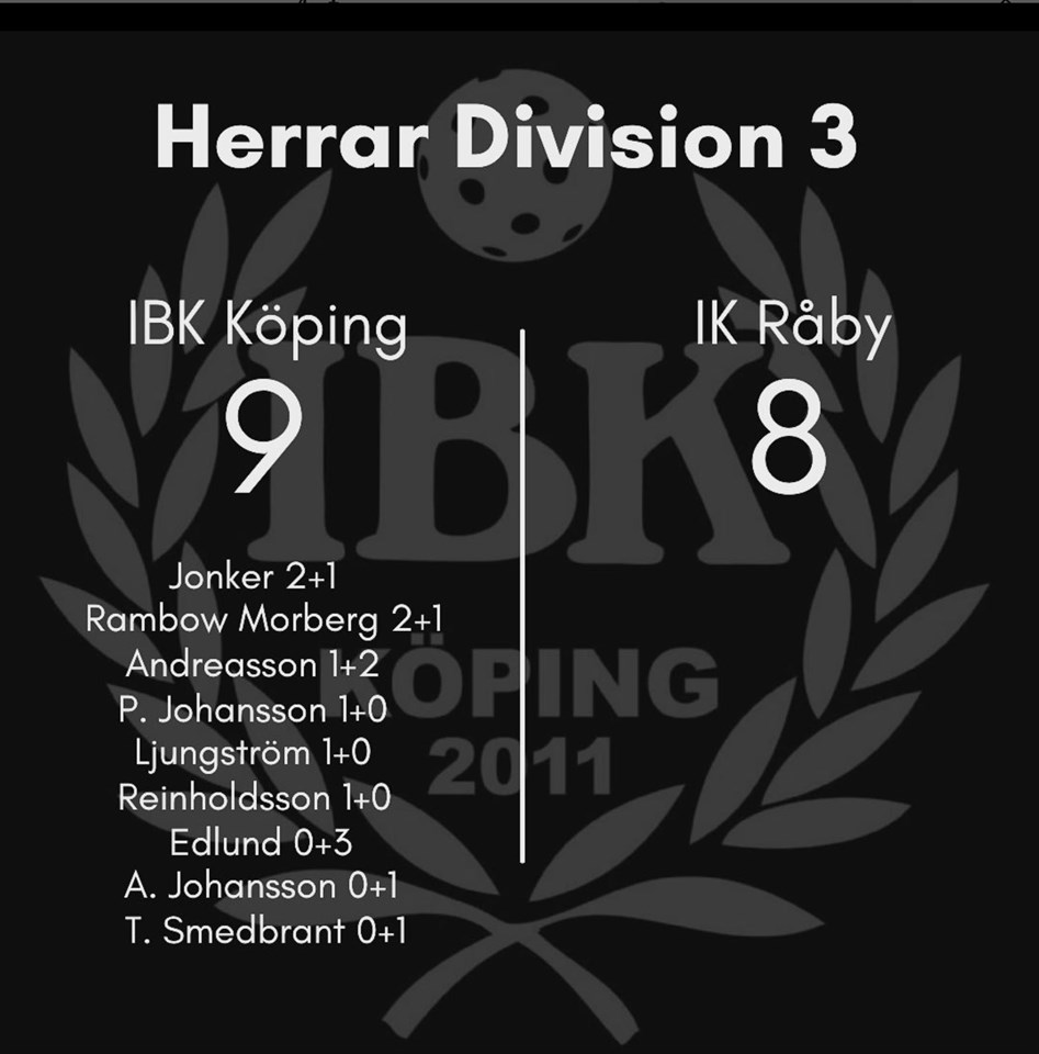 Det satt hårt inne, men efter lite om och men kunde IBK på fredagskvällen ta den tredje raka segern efter 9-8 hemma mot Råby. IBK gjorde ett ryck i den andra perioden och gick ifrån, men gästerna kröp närmare och efter ett dramatiskt slutskede kunde tillslut tre poäng bärgas. Nästa match spelas redan på tisdag, då är det ett roligt lokalderby mot Kungsörs IBK på bortaplan. Herrar Div 3/HJ 15 okt 2022 0kommentarer