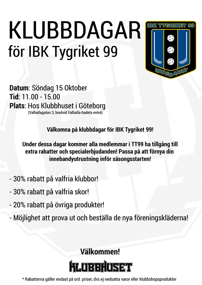 Kolla in våran uppdaterade klubbshop på klubbhuset. För rabatt på ordinariepris använd koden: 16tygriket17 Kommer förmodligen anordnas en klubbkväll för oss nere på klubbhuset med rabatterade priser. Klubbhuset IBK Tygriket 99 11 sep 2017 0kommentarer