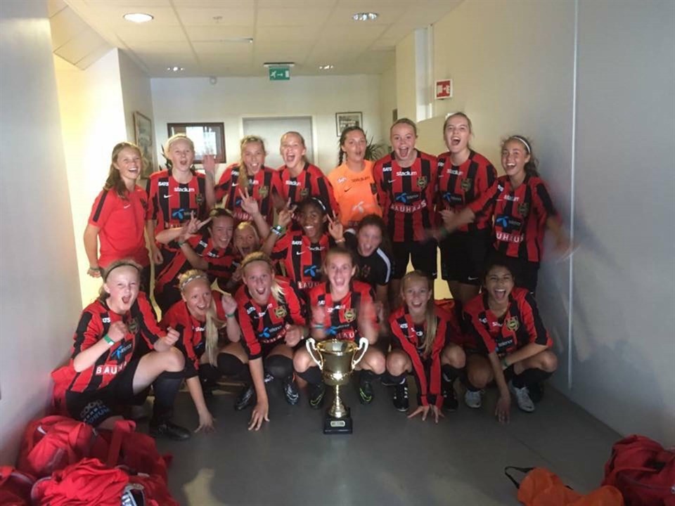 I helgen åkte F02 Akademi till Hamar för att göra upp om medaljerna i motsvarigheten till Svenska Mästarcupen i Karlstad som avgjordes i juni, där F02 Akademi tog en meriterande silvermedalj efter en rafflande final mot duktiga AIK. F02-1 ställs mot idel Norska lag som kvalificerat sig genom spel inom respektive region. - ”I gruppspelet tar vi fram det bästa ur laget och gör en kanonprestation mot duktiga Skedsmo från Lilleström, vinst 4 – 0 efter en av våra bättre prestationer i år” säger Stefan Asp, tränare i laget. I andra matchen ställs BP mot Gjövik/Lyn och laget får med sig bra energi och vinner med 3 – 0. Sista matchen i gruppen slutar också den med en seger med 3 - 0 mot ett defensivt spelande lag. Tjejerna vinner sin grupp efter 3 segrar och inte ett insläppt mål. Under söndagens slutspel ställs BP i kvartsfinal mot Gjövik/Lyn som de tidigare i turneringen besegrat. Gjövik/Lyn hade inte gjort läxan och BP vinner med samma siffror som i gruppspelet, 3 – 0. Efter matchen beger sig laget snabbt av till skolan för packning och städning och lite påfyllning av energi. I semifinal får BP möta en ny bekantskap, Tönsberg Elite. F02-1 trummar på med gott självförtroende och vinner med 3 – 0. Tjejerna ska nu återigen spela final i en Mästarcup där de ställs mot Asker. De börjar lite nervöst men kommer snart in i det och gör 1-0 i slutet av halvleken. Efter ett bra snack i halvtid så är det ett lag på banan och tjejerna skapar chanser på löpande band, tillslut kommer det förlösande 2 – 0 målet och BP spelar säkert tills domaren blåser av finalmatchen. - ”Stark och en imponerande insats av tjejerna igen i en turnering. Vi släpper inte in ett mål på hela turneringen och spelar en fotboll som bådar gott framöver. Mest imponerande är nog det tålamod och bollinnehav vi har i matcherna, vi är trygga i passningsspelet och har många fina kombinationer som leder till avslut. Vi spelar verkligen som ett lag där alla har sina viktiga roller” säger Stefan Asp. Vill avslutningsvis citera Skedsmos tränare – ”Det var det bästa jag sett ett flicklag spela på 8 år” Ett stort grattis till guldet F02-1!
