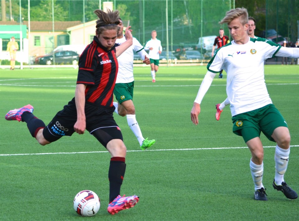 BP inkasserade andra raka segern när Kalmar FF gästade Grimsta IP. 0-1 i paus vändes till 3-1 i den andra halvleken, efter mål av Viktor Gyökeres, Alexander Seger och Olliver Rodeblad Lowe. Efter storsegern mot Assyriska förra helgen (5-1) var det ett BP med självförtroende som tog sig an ligatrean Kalmar under lördagen. Det var det för dagen vitklädda bortalaget som inledde matchen bäst, mot ett något avvaktande BP. Efter 27 minuter tog Kalmar också ledningen, genom Elie Kouakou efter ett missförstånd i hemmaförsvaret. Målet fungerade som väckarklocka för de rödsvarta, som under de återstående 18 minuterna av den första halvleken hann med tre ramträffar. Trots den massiva pressen stod det 0-1 i paus. – Kalmar fick styra spelet väl mycket inledningsvis. Vi pratade i paus om att flytta upp positionerna, och i den andra halvleken hänger motståndarna inte med, säger Dali Savic, lagets tränare. Fyra minuter in i den andra halvleken kom kvitteringen – Viktor Gyökeres avlossade en kanon från 23 meter som borrade sig in i ena krysset, otagbart för John Håkansson i Kalmarmålet. Alexander Seger placerade in 2-1 tio minuter senare och i matchens slutskede punkterade Olliver Rodeblad Lowe matchen med sitt 3-1-mål, efter ett fint förarbete av Nikodemus Granberg. – Det är en match mellan två lag som står för en konstruktiv, positiv fotboll. Vi reser oss efter 0-1, och gör en riktigt bra match, säger Dali Savic. Nästa helg, den 21 juni, åker BP söderut för att möta Åtvidaberg. Matchen är den sista innan serien vänder, och de rödsvarta har häng på Djurgården och Hammarby i toppen. BP – Kalmar FF 3-1 0-1 (27’) Elie Kouakou (KFF) 1-1 (49’) Viktor Gyökeres (BP) 2-1 (61’) Alexander Seger (BP) 3-1 (87’) Olliver Rodeblad Lowe (BP) Laguppställning (4-2-3-1): Markus Rydeberg – Felix Beijmo, Niran Hansson, Robin Olofsson, Tatu Varmanen ¬– Daniel Stensson, Kevin Berg (K) – Matias Antero Linfors, Alexander Seger, Ronny Nilsson – Viktor Gyökeres Ersättare: Christos Liantas, Hjalmar Ekdal, Gustav Ericsson, Nikodemus Granberg, Robin Blomgren, Love Reuterswärd, Olliver Rodeblad Lowe Foto: Stefan Stensson
