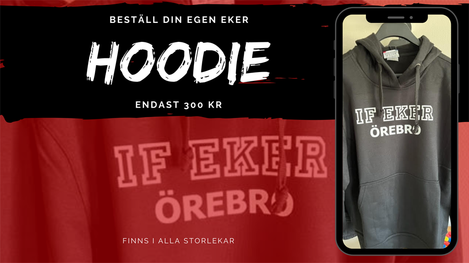 Hej, Nu kan du beställa en egen Eker Hoodie. Dessa kostar endast 300 kronor och finns i alla storlekar. Barnstorlekar dock endast 120, 140, 160. Beställ genom att kommentera storlek nedan. Alternativt maila beställning direkt till Jörgen på kansliet via jorgen.nanberg@hotmail.com eller SMS till 073 6299182. Ange lag, spelarnamn (för- och efternamn) och storlek i beställningen. Storleksmässigt så är det ett vanligt profilmärke, dvs inget specifikt sportmärke. En provstege finns kansliet för att prova storlekar. Jörgen är på kansliet dagtid och kvällstid under tisdagar och torsdagar fram till kl. 20:15