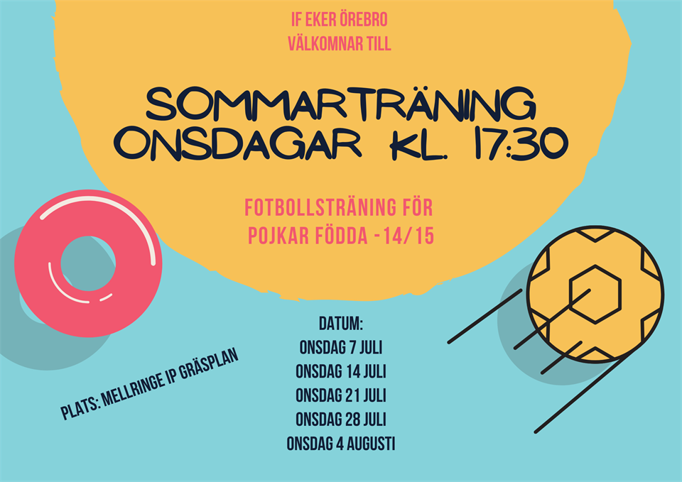 Varmt välkomna till sommarträning med IF Eker. Vi tränar varje onsdag kl 17:30 - 18:30 vid Mellringe IP gräsplan för pojkar födda -14 & -15 från och med 7:e juli fram till 4:e augusti. Vi ses :-) #pojkfotboll #barnträning #fotboll #örebro #fotbollsträning #gemenskap #fotbollslek #träning #ekerleker #barnbehöverrörapåsig #ifeker #ekerfamiljen P-2014/2015 5 jul 2021 0kommentarer