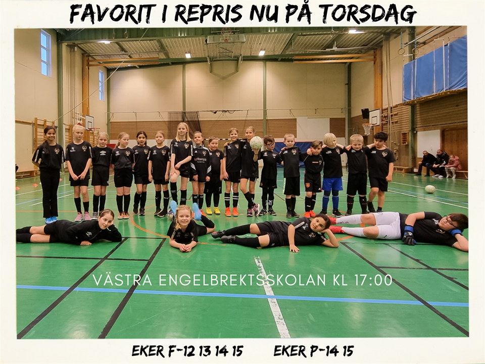 Hej på er, Torsdag 27/4 så kör vi matcher mot tjejerna utomhus på gräset. Samling 17:00 vid Mellringe IP naturgräset och vi kör flera matcher fram till kl. 18:30. Bollarna är på plats kl. 16:30 för de som vill skjuta. Nu på lördag 29/4 spelar vi årets första cup på gräs i Lekeberg. Schema Folkpool Cup : 09:00 Samling Vretalunds IP (samåk gärna) 09:30 Lekebergs IF - IF Eker (plan A) 11:00 IF Eker - KB Karlskoga FF (B) 12:30 IF Eker - IFK Kumla (B) 14:00 Rynninge IK - IF Eker (A) Vi spelar 5 mot 5 och matchtiden är 2 x 10 min. Lagavgiften är 1000 kr som vi delar på. För att delta så swishar man 100 kr till Martin på nummer 079 304 8767. Blir vi mindre än 10 spelare så tar vi resten från lagkassan. Blir vi fler så går överskottet till lagkassan. Betänk ifall vi blir 10 eller fler så blir speltiden lite begränsad pga av kort matchtid, men vi åker även för att umgås och värmer upp med boll emellan matcherna. Klara spelare: Adem, Oday, Mio, Milian, Melvin, Love, Matteus, Nicholas, Jason Lycka till boys!