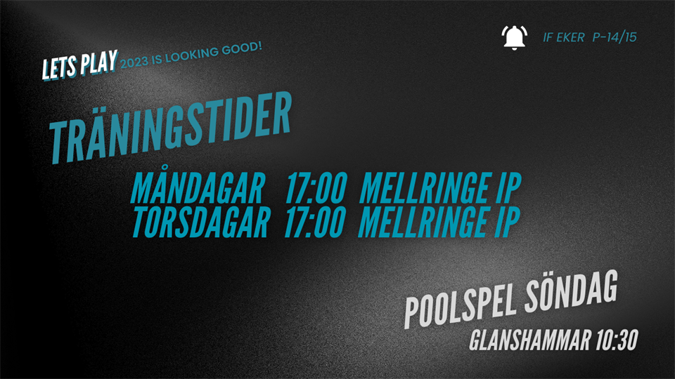 Hej, Från och med nu tränar vi måndagar och torsdagar kl 17 vid Mellringe IP naturgräset (bredvid konstgräsplanen bakom vallen). Måndagar 17:00 Mellringe IP naturgräset Torsdagar 17:00 Mellringe IP naturgräset Adressen är Harriet Löwenhjelms väg 7 Nu på söndag spelar vi årets första poolspel i Glanshammar med samling på plats kl 10:30. Från och med nu så kommer vi att skicka kallelser via mejlen som ni svarar “Kommer” eller “Kommer inte” på. Kallelser till matcher sker även till viss del utifrån träningsnärvaro, men vi försöker se till att alla får chansen att deltaga på minst ett poolspel, men vi dock bara två under våren :-) Man ska även ha betalat medlemsavgift på 300 kr per helår och träningsavgiften 1000kr per år (500kr per halvår) för att få rätt att spela matcher. Ni som inte har betalat Swishar 300+1000 = 1300 kr till IF Eker på nummer: 123 548 2344 och anger spelarens namn. Vi ses, tränarna