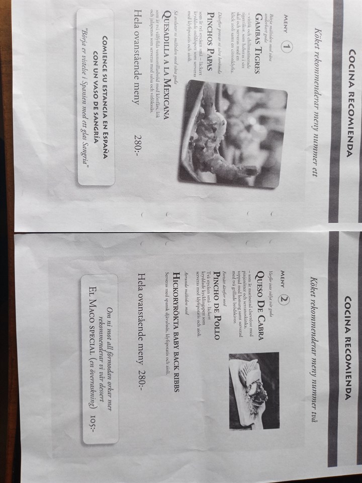 Kl.19.00 återsamling för middag på Papas Tapas. Tänk på att senast på måndag den 13/10 ha meddelat "Generalen" på tel.nr. 070-2924555 vilken av meny 1 eller 2 som ni önskar (se bifogad bild).