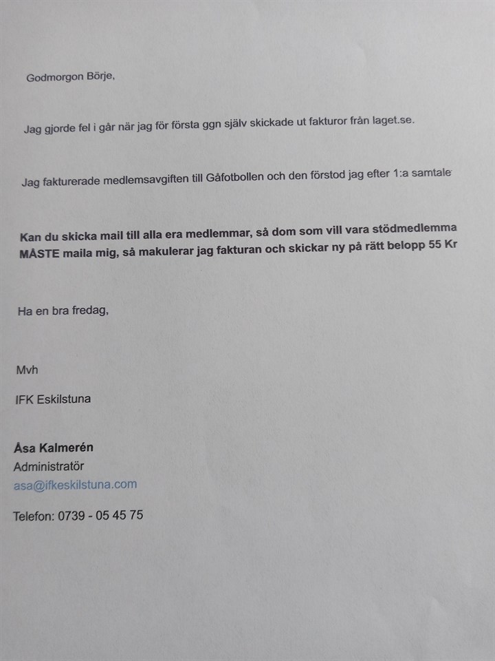 • Info från Åsa på IFK:s kansli