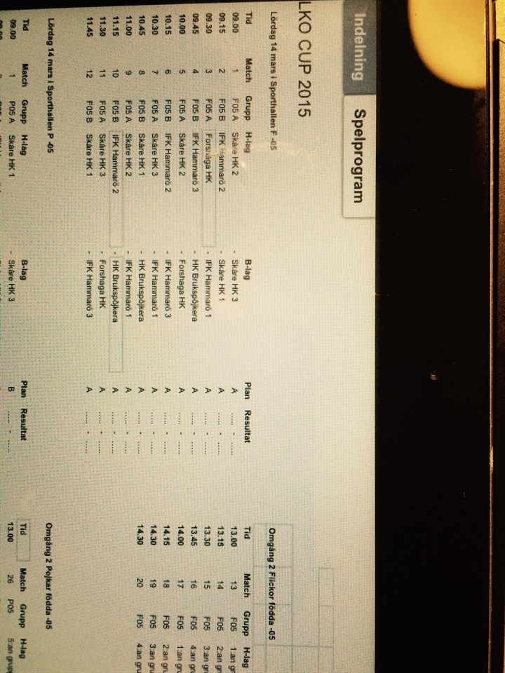 Hej, För att vi skall kunna genomföra matchsammandraget på söndag måste vi hjälpa till. Vår uppgift blir att sköta bläddringar av mål på 3 planer mellan kl. 09.00 till 13.00. Det behövs en person per plan. Det är 4 st som har sagt att de kan hjälpa till, det vore bra om några fler kan hjälpa till. Då kan vi göra ett schema så man inte behöver stå och bläddra så lång tid. Skriv i tråden om ni kan hjälpa till. Mvh Tränarna F-05/06 5 mar 2015 9kommentarer