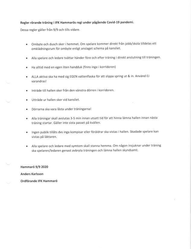 • Covid-regler vid TRÄNINGAR!