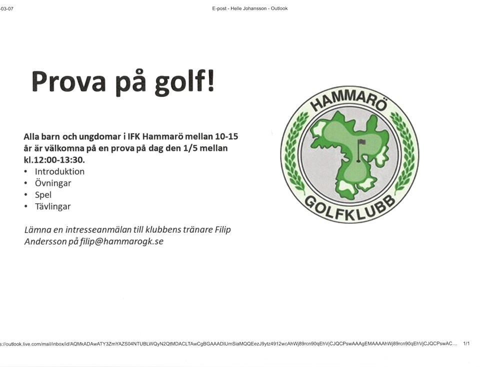 Hej på Er! Jag heter Filip Andersson och är golftränare på Hammarö Golfklubb. Jag har huvudansvaret för vår juniorverksamhet. Vi har en verksamhet med ca 80 juniorer och vi vill gärna bli fler. Vi har allt från nybörjare till Elit. Jag tror personligen att barn och ungdomar som vill satsa på idrott har bäst möjligheter om de håller på med många sporter. Handboll och Golf tror jag passar väldigt bra att kombinera! Så ta chansen att testa mellan 1 Maj kl 12.00-13.30 Gäller ALLA barn mellan 10-15 år Golfhälsningar Filip Andersson Head Pro Hammarö GK Ps. anmäl Er nedan i kommentatorsfältet, absolut senast 28 April-19 Ds. P04/05 (P16/15) 7 mar 2019 0kommentarer
