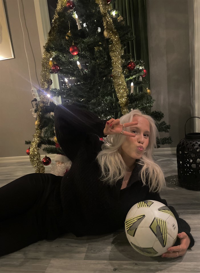 Namn:Stina Lagerroth Ålder: 26år Varför firar vi Jul? För att Jesus föddes och älskade att lägga fisk i potatisgratängen Vilken är din sämsta och bästa julklapp du har fått?Sämsta julklappen jag fått är en illrosa polotröja jag fick av min bror för 10 år sedan, men får också säga att det är den bästa eftersom det är den enda jag kommer ihåg. Tack för den återigen David!🎅 Vilken är din favorit Julfilm? Jag kollar sällan på film men Stig Helmer-klassikerna som sänds vid jul/nyår är bra! Vem är det som sjunger ”från oss alla till er alla” i kalle anka på Julafton? Tjuren Ferdinand Om du var Tomtemor/Tomtefar vart hade du bott då? Förmodligen i en stuga i skogen Som vi alla vet så kommer tomten till oss genom skorstenen, men vad gör tomten där det inte finns en skorsten? Hemma kommer han alltid genom dörren även om skorsten finns att tillgå. Vilket är ditt bästa julklappstips? En tråkig julklapp kan alltid räddas upp med ett riktigt bra rim! Är det något du vill säga till alla följarna såhär inför Jul och den kommande säsongen? Gör ingenting som tomten inte hade gjort och lukta bara på glöggen. God Jul, var snälla och fortsätt heja på IFK Hjo i sommar 🎅💙 #4 😊