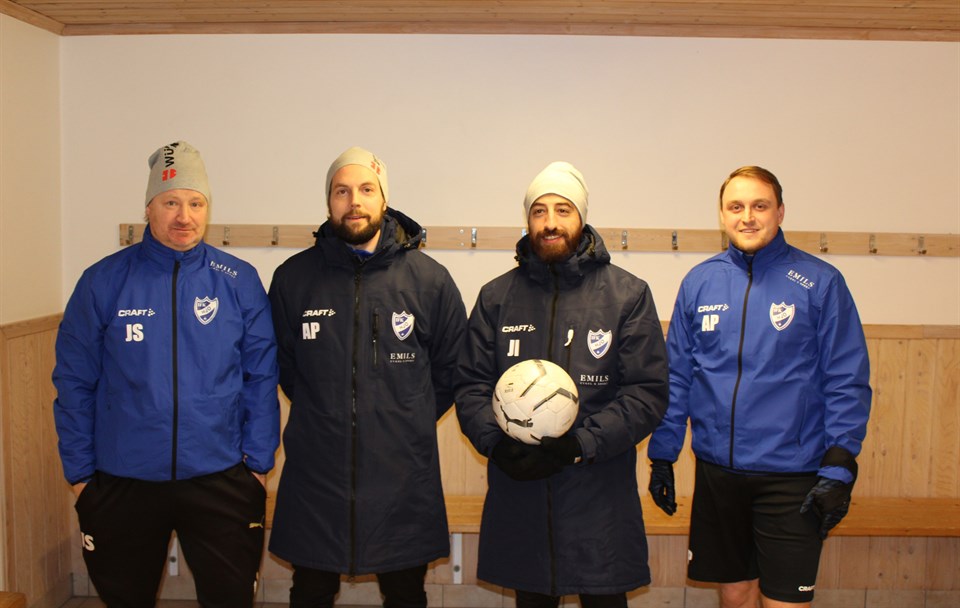 Så här ser tränarstaben ut inför kommande säsong för tillfället. Huvudtränaren Johan Issa med bollen har presenterat sig i ett annat inlägg och kommer komma mer information framåt. Assisterande och målvaktstränaren Axel Påhlsson längst till höger kommer också presenteras mer framåt. Redan nu kommer lite om hans första tid i IFK Hjo Det känns som en familjär klubb. Jag gillar när det är folk runt om kring klubben som visar sig i omklädningsrummen och på träningar. Det är ett väldigt bra sätt för nya spelare att känna sig välkomna. Jag själv värdesatte det mycket när jag själv spelade. Jag personligen hoppas på att utveckla mitt sätt att se fotboll på. Förut har man varit på planen och sett allt från den vinkeln, jag tror det blir något helt annat att se och försöka förstå vad som händer vid sidan av. Som tur är så finns det erfarna och kunniga ledare vid min sida som jag kan lära mig mycket ifrån. Bredvid Johan i mitten står vår spelande assisterande tränare Patric Lundgren. Patric har spelat i IFK många år och kommer stå för erfarenhet och rutin på planen men även i tränarstaben. Längst till vänster står en välkänd person i IFK sammanhang Johan Smedberg. Johan kommer att vara behjälplig vid träningar när han möjlighet att närvara. Johan har en stor rutin som spelare på en hög nivå och som mångårig tränare mest på ungdomssidan i Hjo. Många av spelarna i dagens herrlag har Johan varit med och tränat i ungdomsåren så de vet vad som krävs när Johan är tränare.
